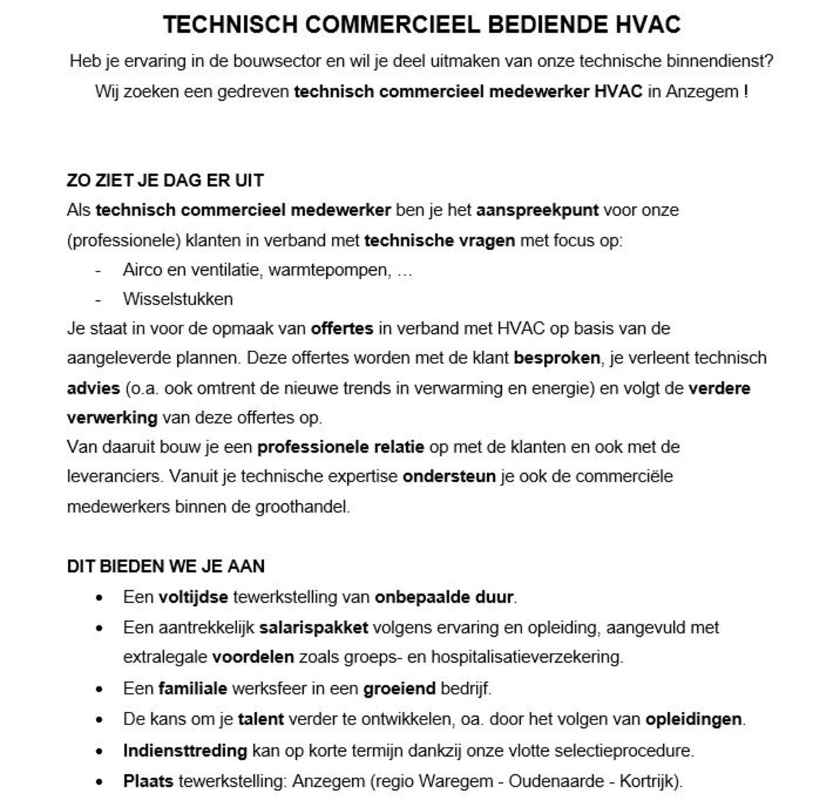 Mail ons je CV en motivatie! Vragen? Contacteer Nadia op 056/68.70.00.